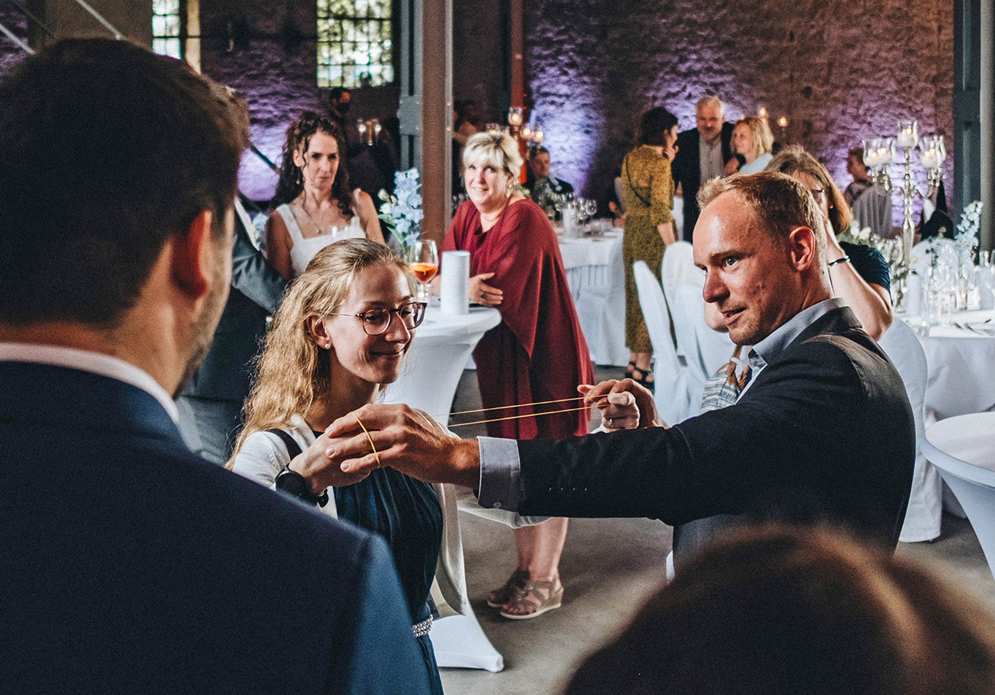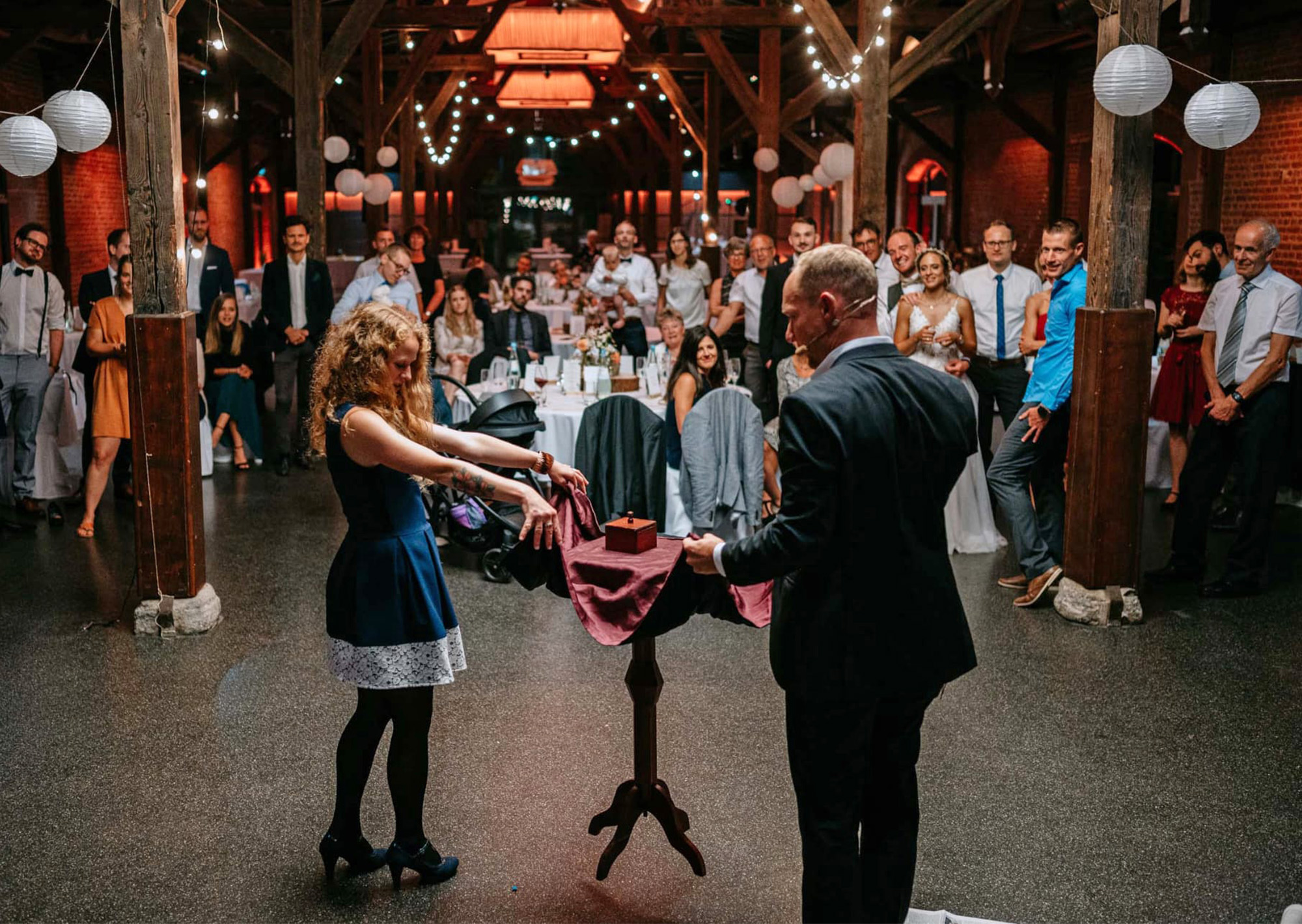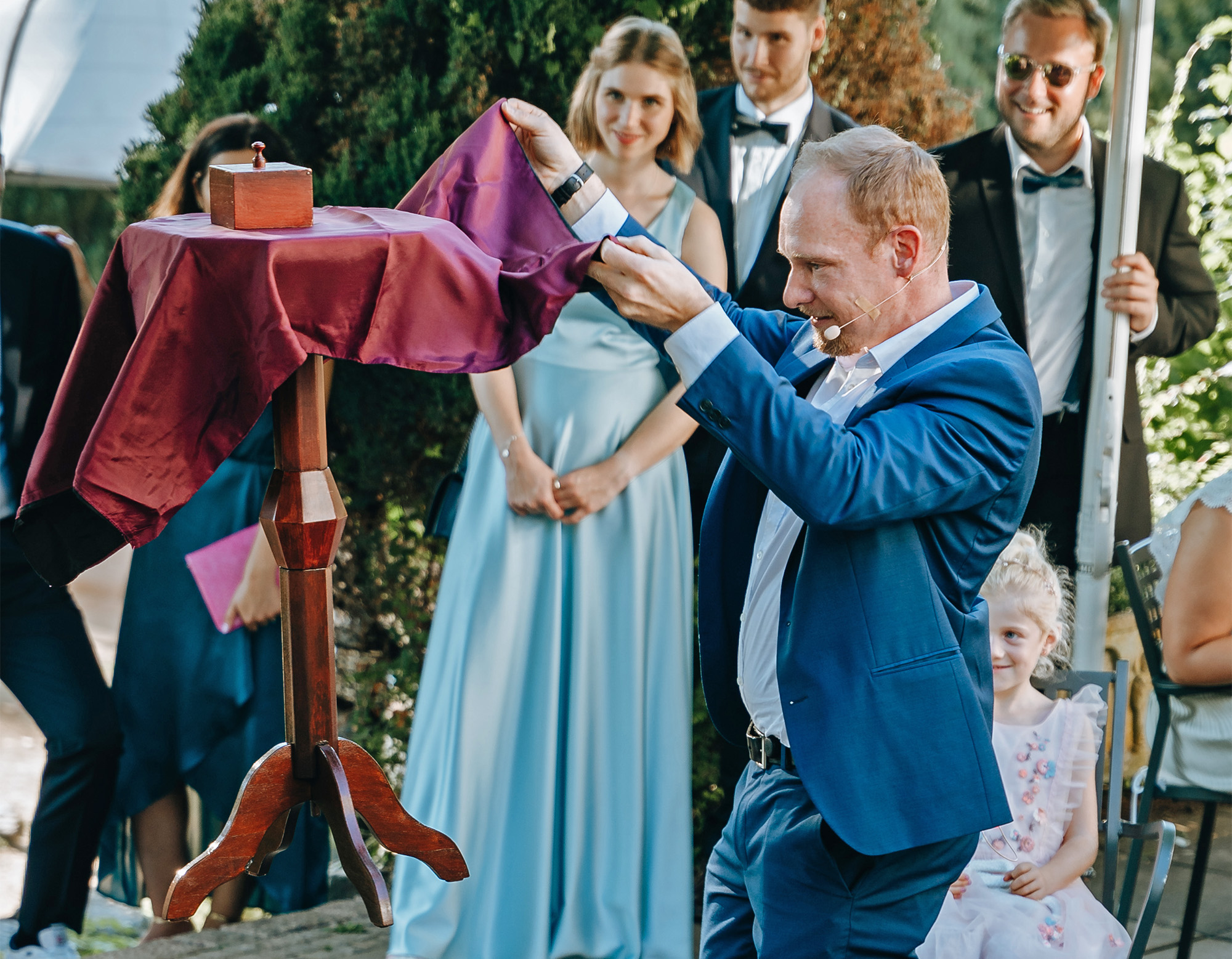 Eine Zaubershow als i-Tüpfelchen auf einer Hochzeitsfeier sorgt für die ganz besondere Erinnerung. Gerade auf Hochzeiten ist es häufiger der Fall, dass sich nicht alle Gäste untereinander kennen. So kann die gemeinsam erlebte Show das Eis brechen, für eine aufgeheiterte Stimmung sorgen und die Gäste in Kontakt bringen. Auch wenn das Brautpaar noch einmal für Fotos die Gäste alleine lassen muss, so kann der Zauberer währenddessen für das Entertainment der Gäste sorgen.
